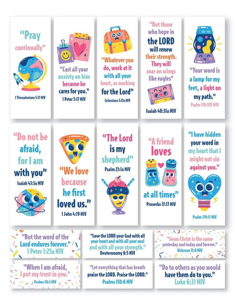 Print a copy of these Bible Verse Backpack Tags to put in kiddos' backpacks as they start heading back to school. Each note reminds kids of an important Bible truth and can encourage them through the school year.